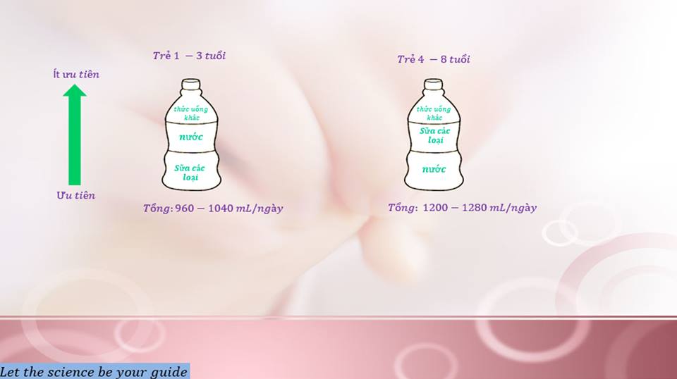 *Trẻ từ 1-6 tuổi thì hạn chế khoảng 120-180ml/ngày. Trẻ uống quá nhiều sẽ giảm lượng ăn và mất khẩu vị.