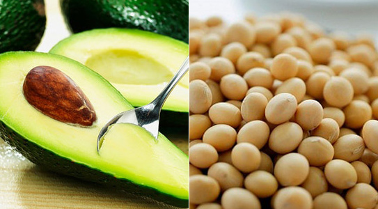 Nghiên cứu cho thấy các chất trong trái bơ hay đậu nành có thể kích thích tế bào sụn sinh trưởng collagen, một thành phần protein chủ yếu của gân, sụn và xương. Trong một nghiên cứu, những người bị thoái hóa khớp gối hay khớp háng được cho uống trái bơ hay đậu nành trong vòng 6 tháng thấy giảm các triệu chứng của thoái hóa khớp và không phát hiện thấy tác dụng phụ gì cả. Một số gia vị như ớt, hạt tiêu, gừng, lá lốt đều có tác dụng chống viêm, giảm đau đối với bệnh thoái hóa khớp. Thậm chí, người ta còn phân tách được từ ớt hoạt chất capsain có thể bôi chữa sưng đau khớp thoái hóa.